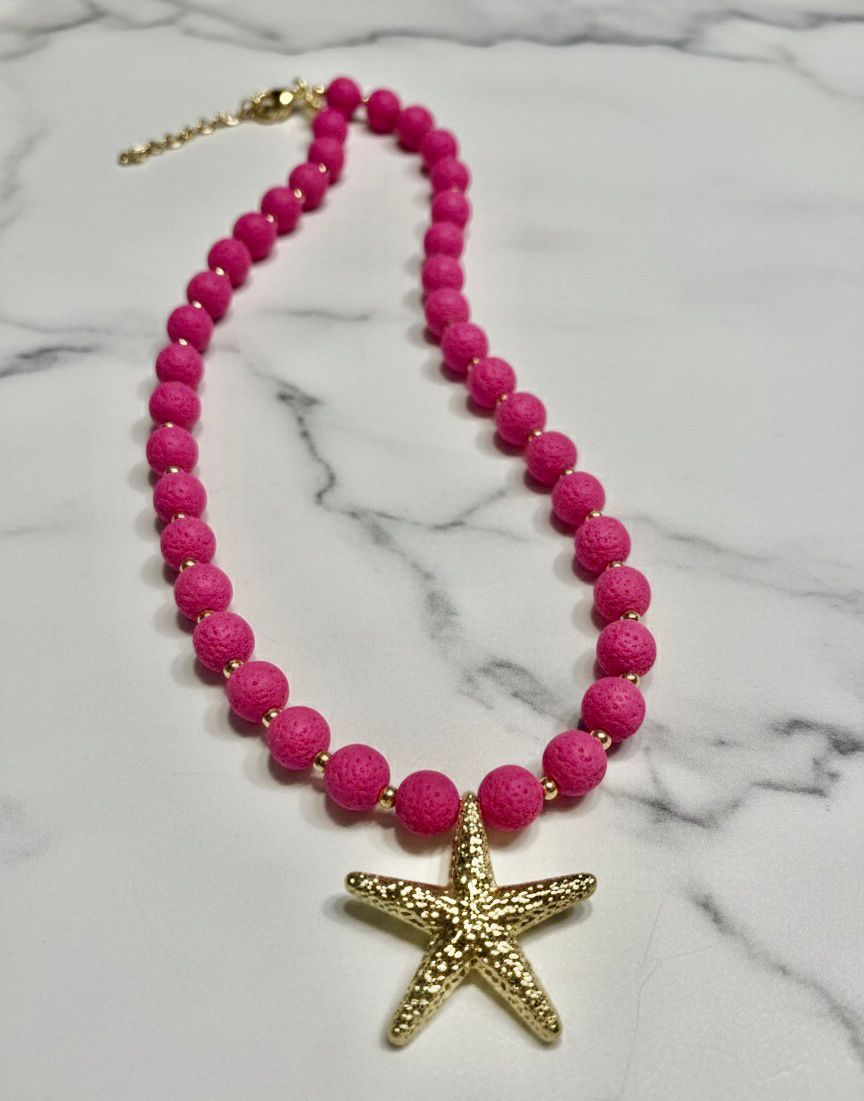 Piedra volcanica fucsia, colgate estrella de mar baño de or, cadena extensora